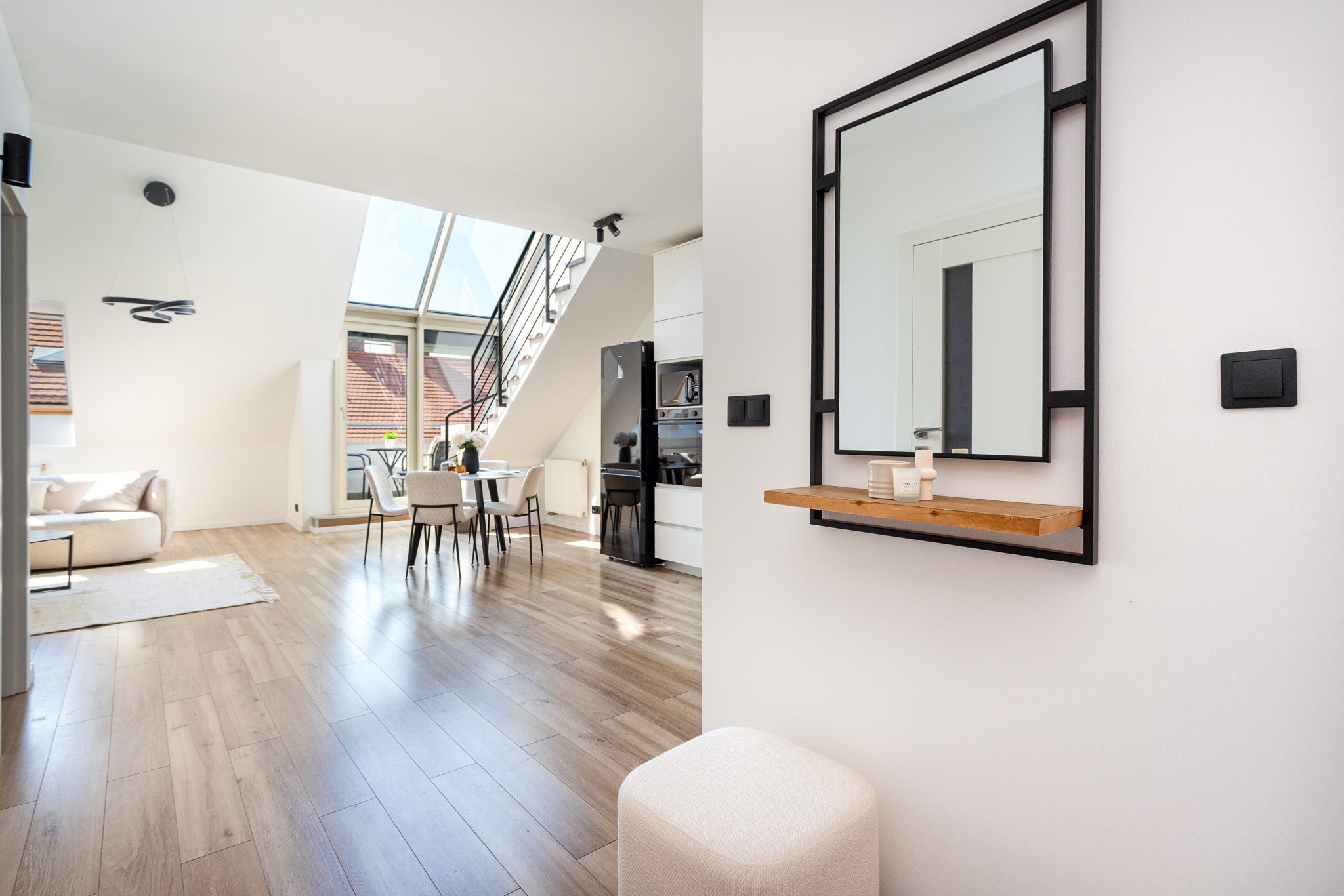 Megvételre kínálok Budapesten a IX. kerületben az Ipar utcában, a Gizella Park Társasház 6. emeletén, egy felújított, belső kétszintes, nettó 103 nm-es nappali + 3 hálószobás erkélyes ingatlant.